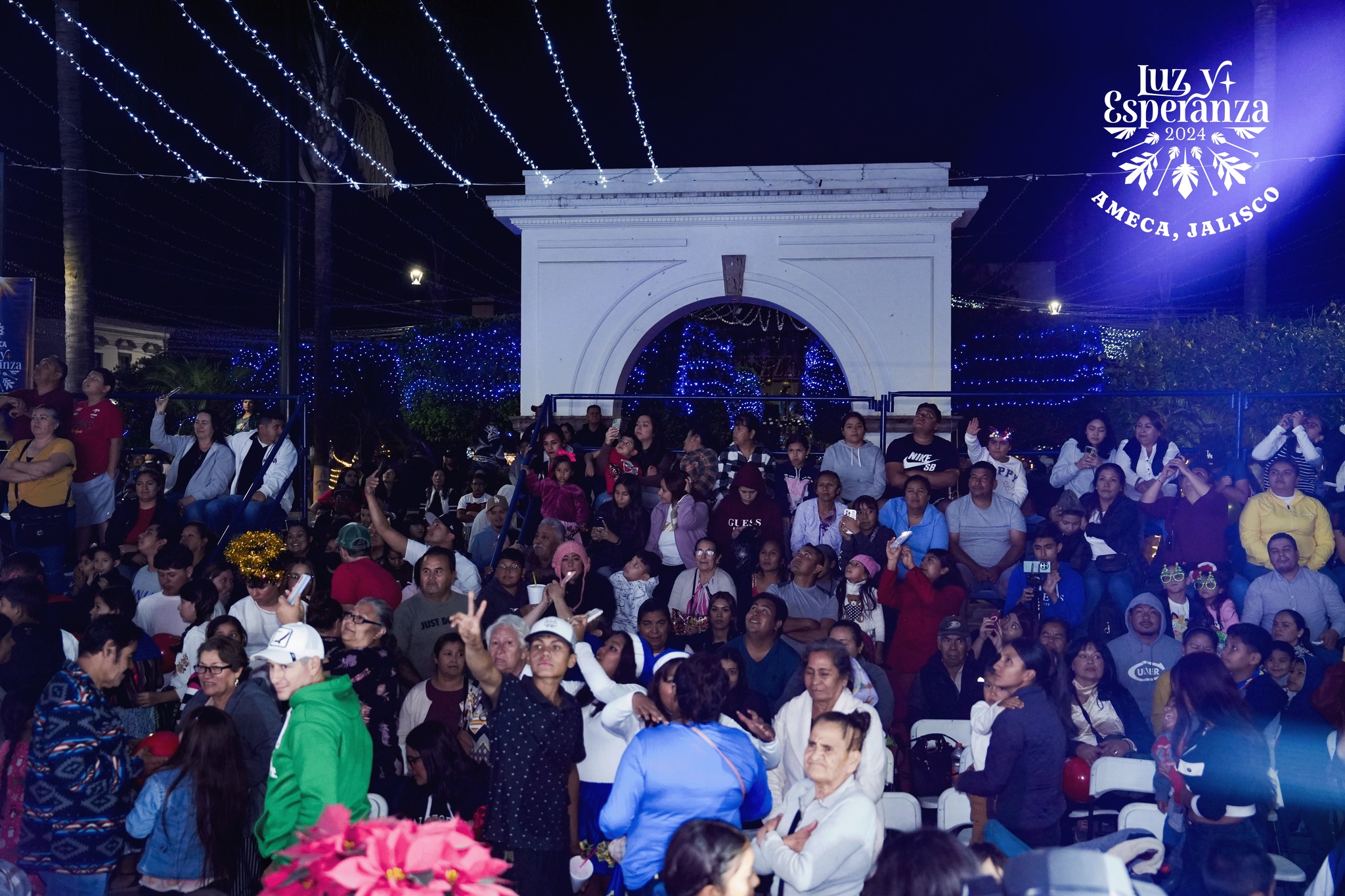 2. Encendido del Árbol de la Esperanza. El árbol navideño fue encendido en un acto lleno de emoción, simbolizando los deseos y la unión de todas las familias de Ameca.